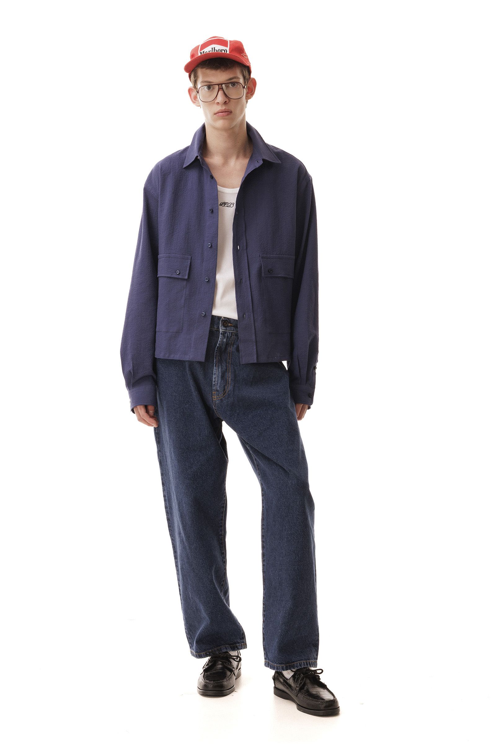 Seersucker fabric, longsleeve shirt, crop fit