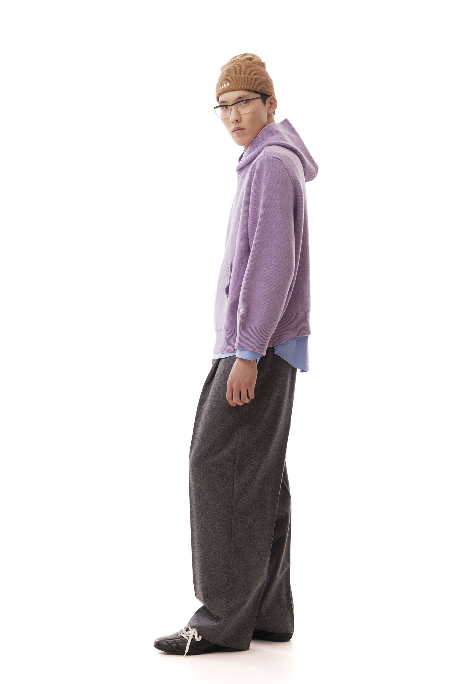 Wool Hoodie, over fit, embroidered logo on the cuff