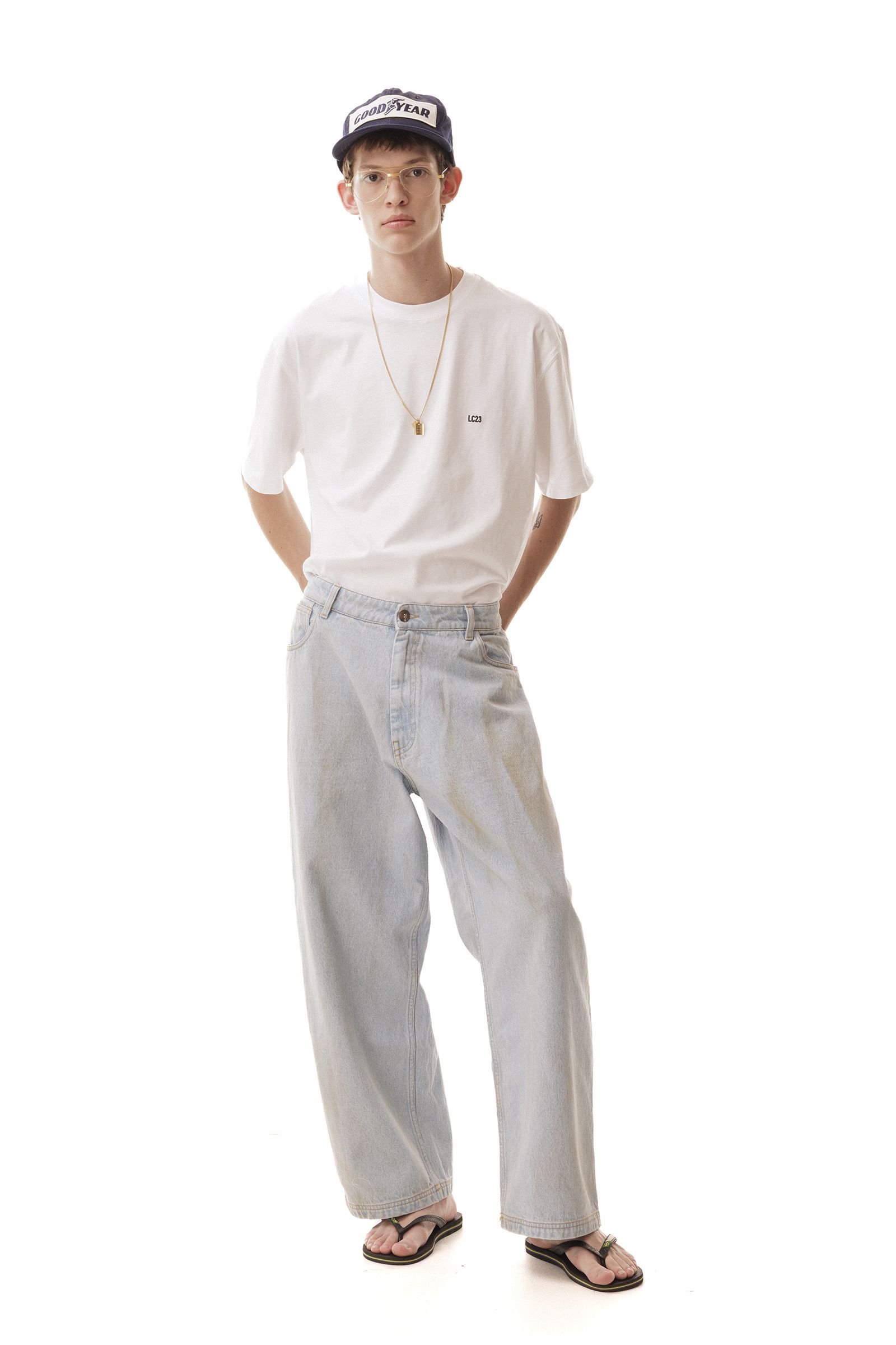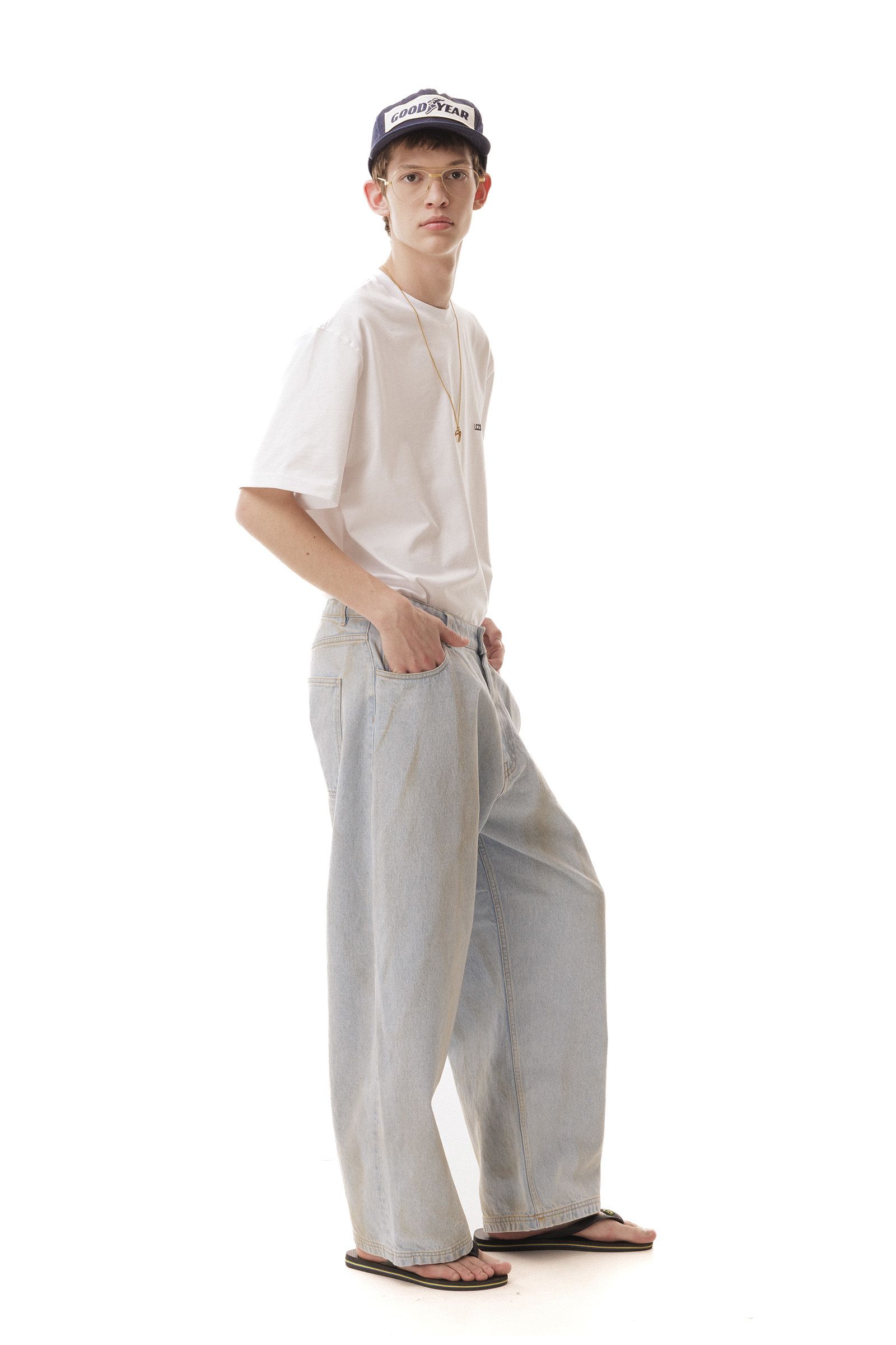Washed denim, wide fit